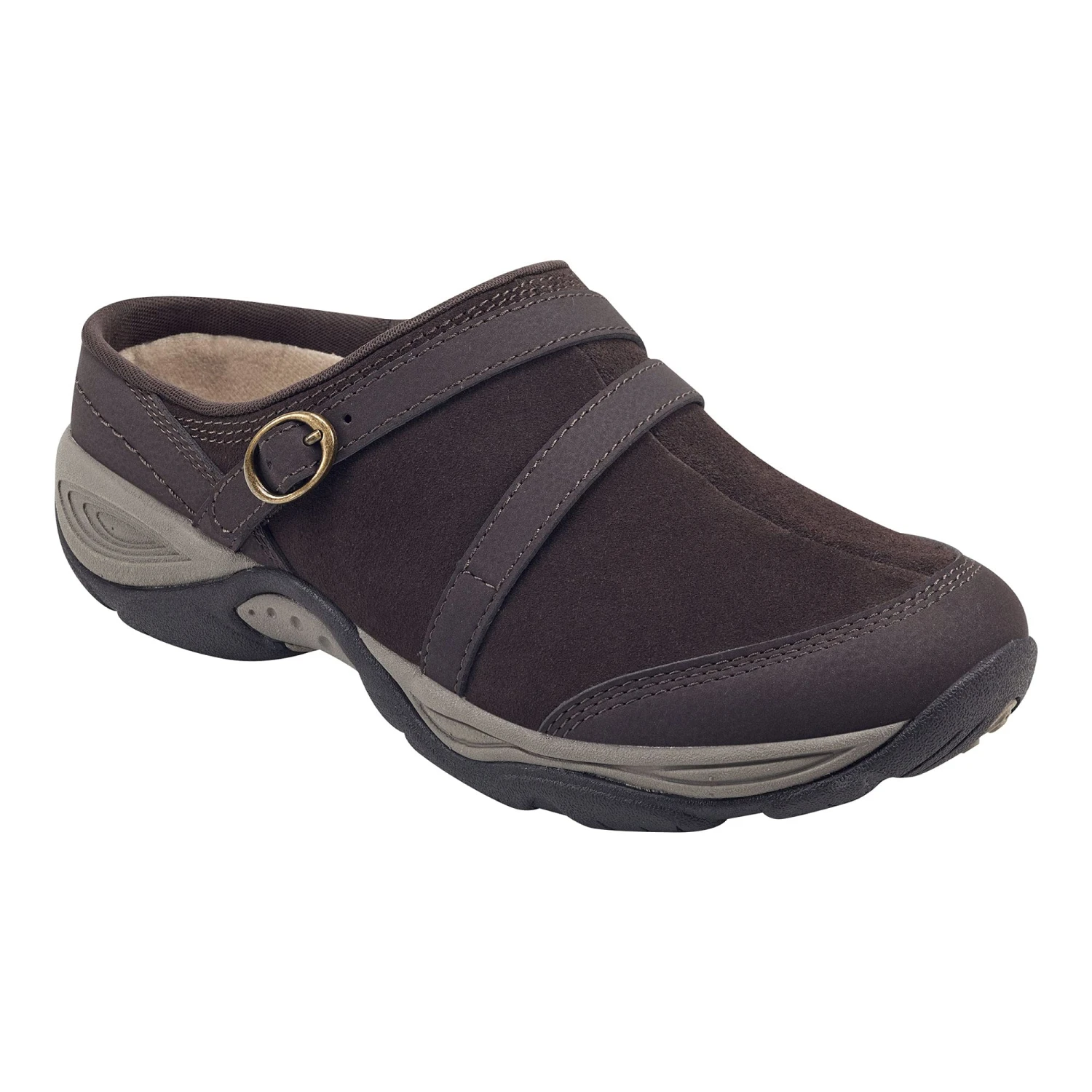 - Step up your casual looks with the orthotic-friendly Easy Spiritยฎ Equinox, a suede mule with faux leather accents and decorative buckle detail atop a durable rubber outsole designed to provide superior traction.