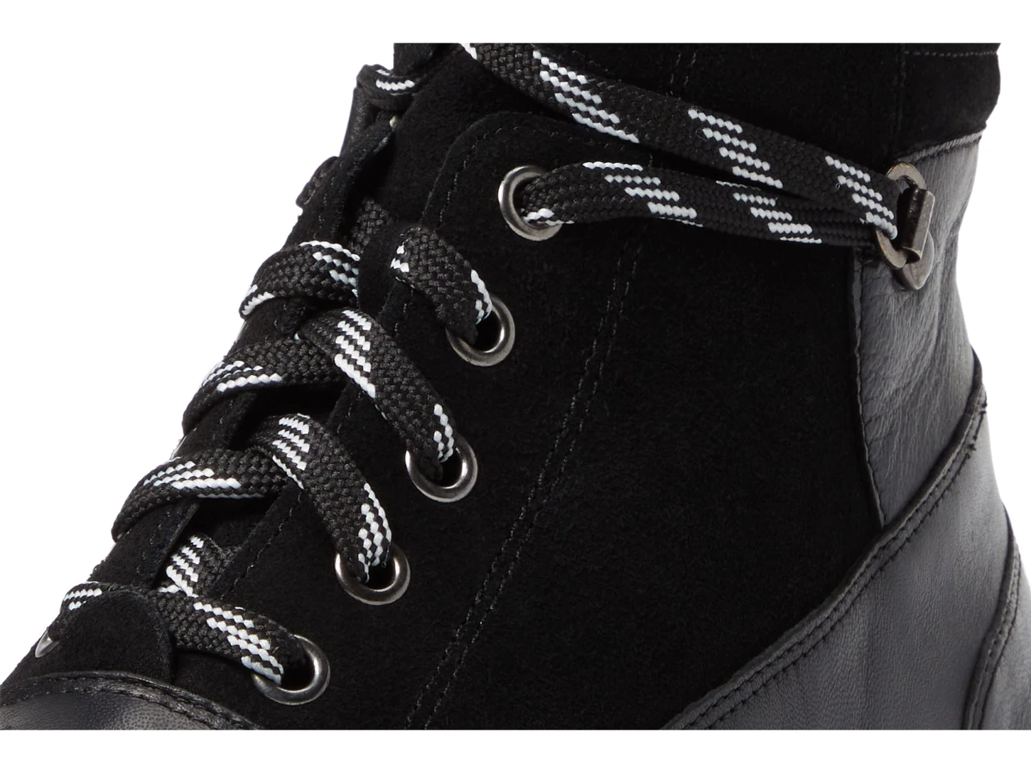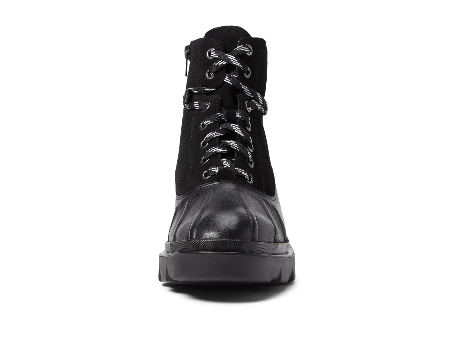 - Lace-up closure with a zipper on the inside.