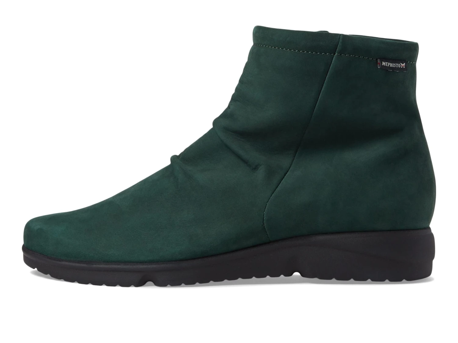 - Relaxed, ruched leather ankle boot.