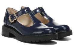 - Vamp strap with buckle closure.