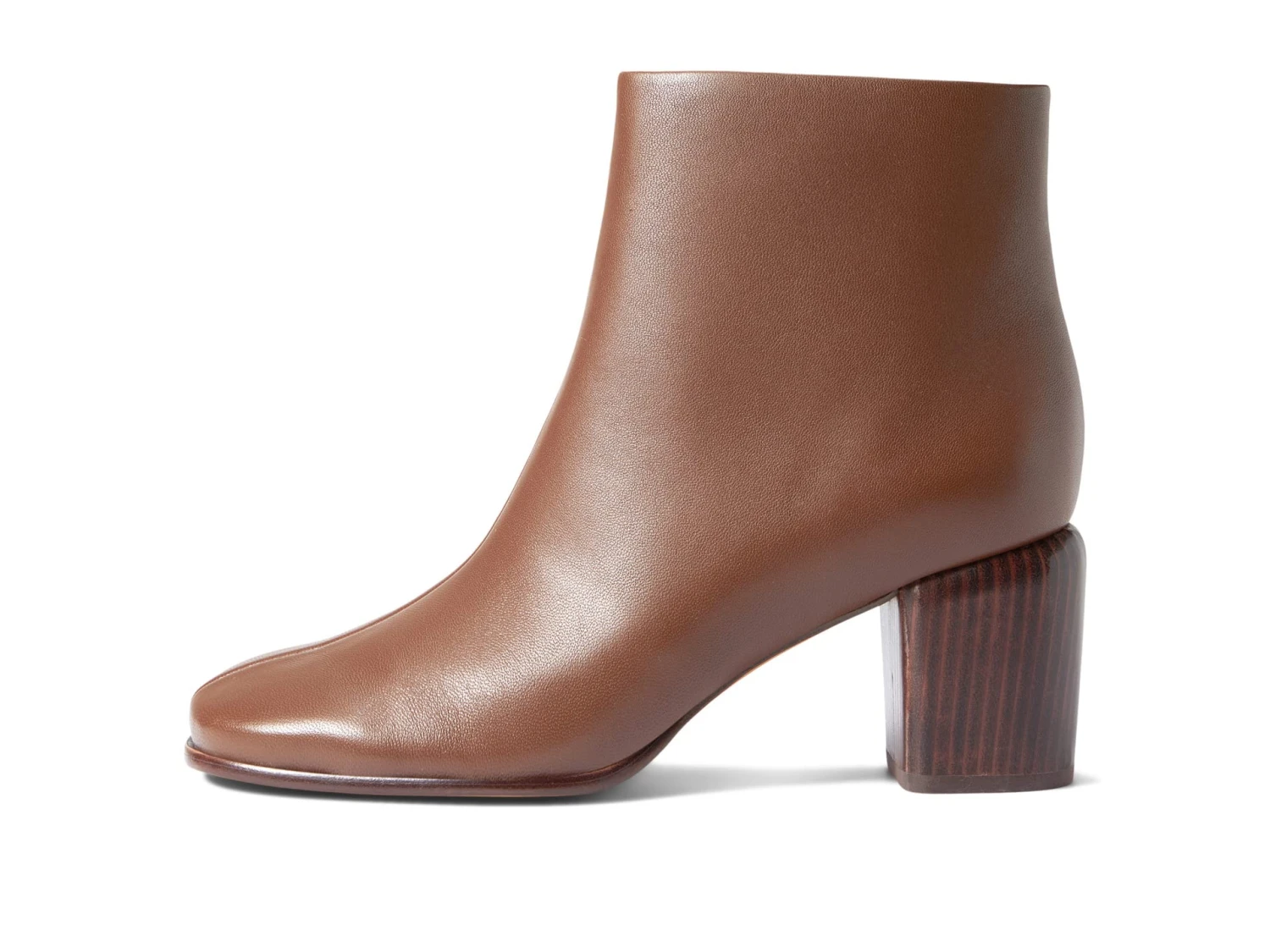 - Side zippered closure and rounded square toe silhouette.