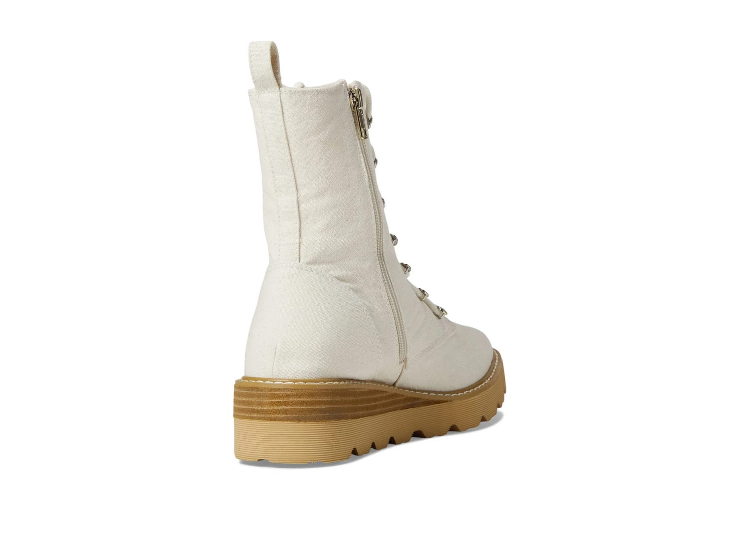 - Chunky sole with exposed stitching.